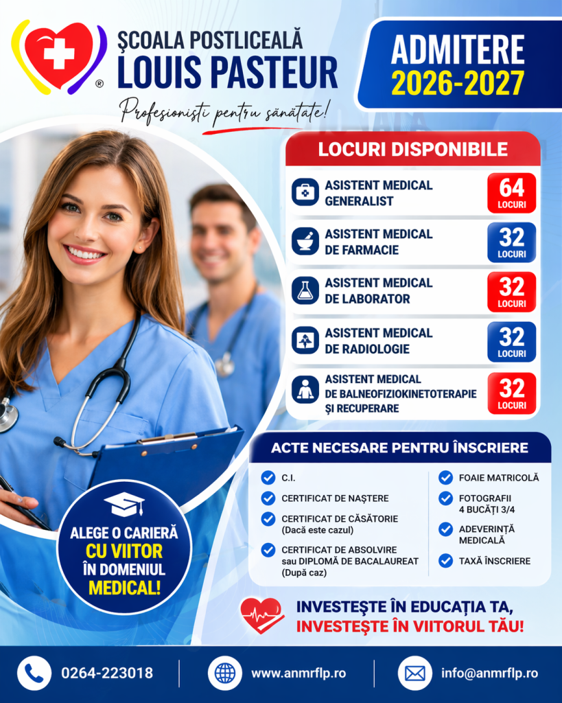 Pentru înscrierea la Școala Postliceală – anul 2026–2027, sunt necesare următoarele documente: